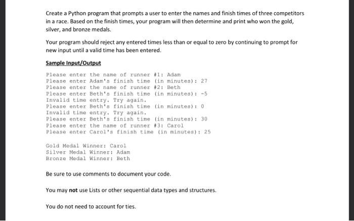 Solved Create A Python Program That Prompts A User To Enter Chegg Com